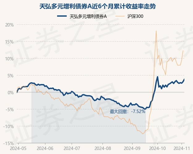 证券之星消息,11月4日,天弘多元增利债券A最新单位净值为1.0443元,累计净值为1.0443元,较前一交易日上涨0.43%。历史数据显示该基金近1个月上涨0.12%,近3个月上涨4.94%,近6个月上涨3.1%,近1年上涨3.38%。该基金近6个月的累计收益率走势如下图: