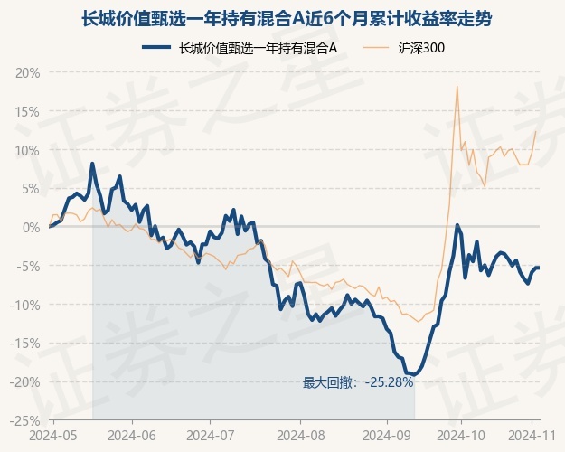 证券之星消息,11月4日,长城价值甄选一年持有混合A最新单位净值为0.8061元,累计净值为0.8061元,较前一交易日上涨0.0%。历史数据显示该基金近1个月下跌5.53%,近3个月上涨3.97%,近6个月下跌5.37%,近1年上涨7.67%。该基金近6个月的累计收益率走势如下图: