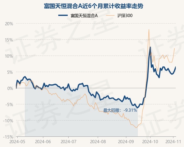 证券之星消息,11月5日,富国天恒混合A最新单位净值为1.1284元,累计净值为1.1284元,较前一交易日上涨1.07%。历史数据显示该基金近1个月下跌2.68%,近3个月上涨10.53%,近6个月上涨6.44%,近1年上涨8.59%。该基金近6个月的累计收益率走势如下图: