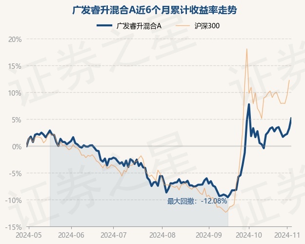 证券之星消息,11月5日,广发睿升混合A最新单位净值为0.7513元,累计净值为0.7513元,较前一交易日上涨1.8%。历史数据显示该基金近1个月上涨0.47%,近3个月上涨15.12%,近6个月上涨5.17%,近1年上涨4.54%。该基金近6个月的累计收益率走势如下图: