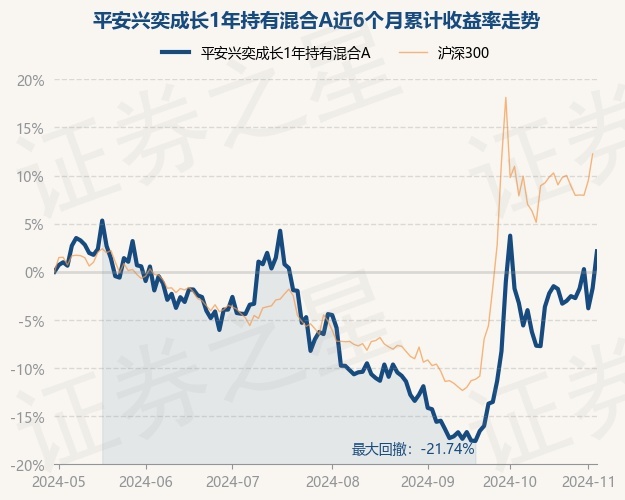 证券之星消息,11月5日,平安兴奕成长1年持有混合A最新单位净值为0.7431元,累计净值为0.7431元,较前一交易日上涨3.9%。历史数据显示该基金近1个月上涨3.19%,近3个月上涨13.17%,近6个月上涨2.13%,近1年下跌0.09%。该基金近6个月的累计收益率走势如下图: