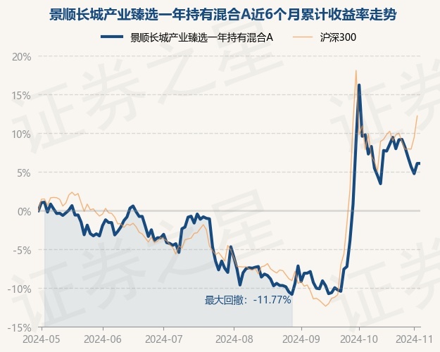 证券之星消息,11月5日,景顺长城产业臻选一年持有混合A最新单位净值为0.9585元,累计净值为0.9585元,较前一交易日上涨0.0%。历史数据显示该基金近1个月下跌0.71%,近3个月上涨19.84%,近6个月上涨8.34%,近1年上涨1.48%。该基金近6个月的累计收益率走势如下图: