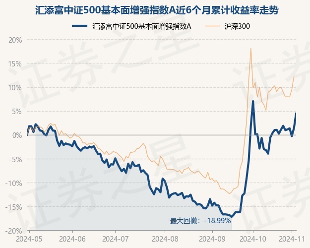 证券之星消息,11月5日,汇添富中证500基本面增强指数A最新单位净值为0.8346元,累计净值为0.8346元,较前一交易日上涨3.0%。历史数据显示该基金近1个月上涨2.35%,近3个月上涨20.24%,近6个月上涨4.43%,近1年上涨4.3%。该基金近6个月的累计收益率走势如下图: