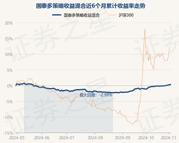 证券之星消息,11月5日,国泰多策略收益混合最新单位净值为1.3718元,累计净值为1.3718元,较前一交易日上涨0.11%。历史数据显示该基金近1个月上涨1.46%,近3个月上涨2.49%,近6个月上涨0.38%,近1年下跌0.69%。该基金近6个月的累计收益率走势如下图: