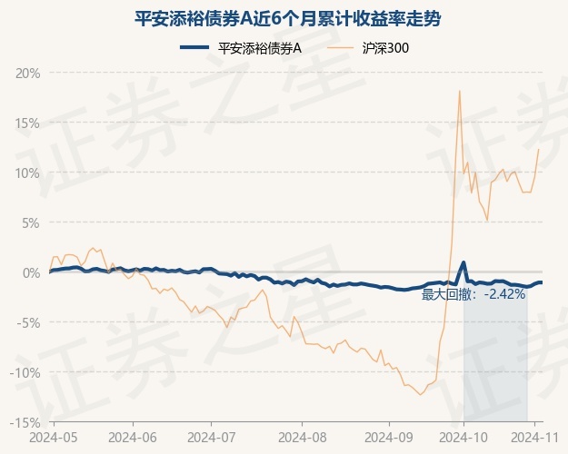 证券之星消息,11月5日,平安添裕债券A最新单位净值为1.011元,累计净值为1.011元,较前一交易日上涨0.0%。历史数据显示该基金近1个月下跌0.93%,近3个月下跌0.02%,近6个月下跌0.96%,近1年上涨4.1%。该基金近6个月的累计收益率走势如下图: