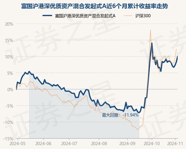 证券之星消息,11月5日,富国沪港深优质资产混合发起式A最新单位净值为1.0466元,累计净值为1.0466元,较前一交易日上涨1.54%。历史数据显示该基金近1个月下跌0.84%,近3个月上涨15.86%,近6个月上涨10.01%,近1年上涨22.55%。该基金近6个月的累计收益率走势如下图: