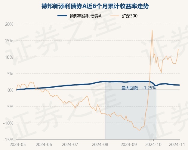 证券之星消息,11月5日,德邦新添利债券A最新单位净值为1.1357元,累计净值为1.3837元,较前一交易日下跌0.03%。历史数据显示该基金近1个月下跌0.66%,近3个月下跌1.05%,近6个月上涨1.42%,近1年下跌1.48%。该基金近6个月的累计收益率走势如下图: