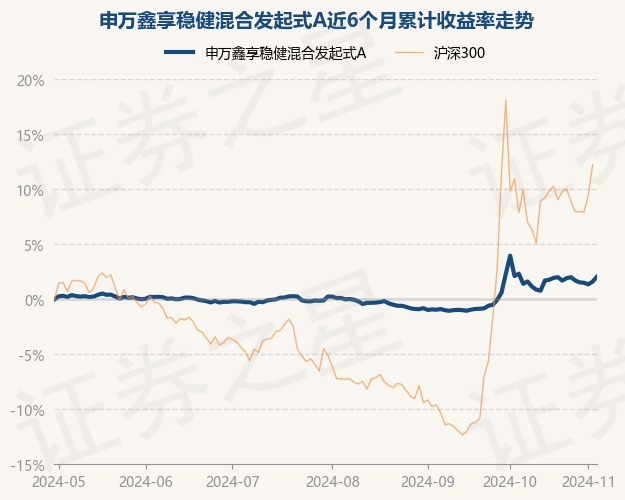 证券之星消息,11月5日,申万鑫享稳健混合发起式A最新单位净值为1.0216元,累计净值为1.0216元,较前一交易日上涨0.43%。历史数据显示该基金近1个月下跌0.27%,近3个月上涨1.93%,近6个月上涨2.05%,近1年上涨3.6%。该基金近6个月的累计收益率走势如下图: