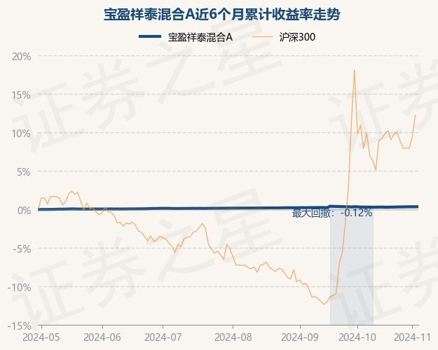 证券之星消息,11月5日,宝盈祥泰混合A最新单位净值为1.0588元,累计净值为1.3241元,较前一交易日上涨0.01%。历史数据显示该基金近1个月上涨0.01%,近3个月上涨0.19%,近6个月上涨0.37%,近1年上涨1.94%。该基金近6个月的累计收益率走势如下图: