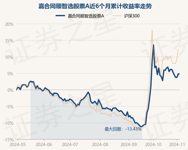 证券之星消息,11月5日,嘉合同顺智选股票A最新单位净值为0.8253元,累计净值为0.9753元,较前一交易日上涨0.0%。历史数据显示该基金近1个月下跌1.61%,近3个月上涨13.41%,近6个月上涨6.89%,近1年上涨9.82%。该基金近6个月的累计收益率走势如下图: