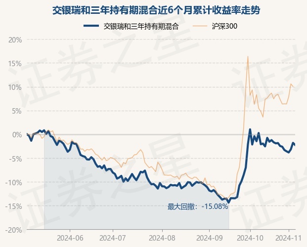证券之星消息,11月6日,交银瑞和三年持有期混合最新单位净值为0.7359元,累计净值为0.7359元,较前一交易日下跌0.45%。历史数据显示该基金近1个月下跌0.16%,近3个月上涨9.95%,近6个月下跌2.24%,近1年下跌16.84%。该基金近6个月的累计收益率走势如下图: