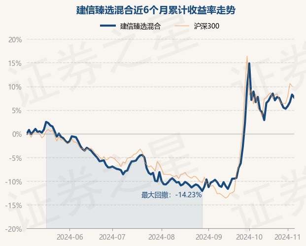 证券之星消息,11月6日,建信臻选混合最新单位净值为0.8668元,累计净值为0.8668元,较前一交易日下跌0.57%。历史数据显示该基金近1个月下跌2.07%,近3个月上涨20.01%,近6个月上涨7.65%,近1年上涨4.83%。该基金近6个月的累计收益率走势如下图: