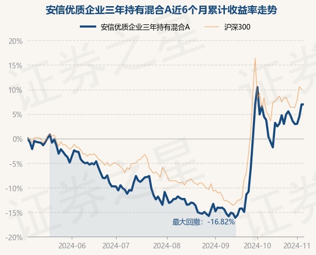 证券之星消息,11月6日,安信优质企业三年持有混合A最新单位净值为0.8378元,累计净值为0.8378元,较前一交易日上涨0.0%。历史数据显示该基金近1个月下跌1.44%,近3个月上涨20.22%,近6个月上涨5.4%,近1年上涨0.35%。该基金近6个月的累计收益率走势如下图: