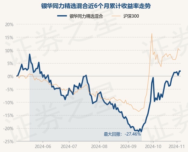 证券之星消息,11月6日,银华同力精选混合最新单位净值为0.9083元,累计净值为0.9083元,较前一交易日上涨0.0%。历史数据显示该基金近1个月上涨6.5%,近3个月上涨14.22%,近6个月上涨3.72%,近1年上涨5.58%。该基金近6个月的累计收益率走势如下图: