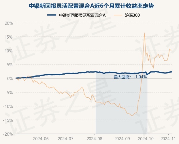 证券之星消息,11月6日,中银新回报灵活配置混合A最新单位净值为1.723元,累计净值为2.043元,较前一交易日上涨0.0%。历史数据显示该基金近1个月上涨0.29%,近3个月上涨0.17%,近6个月上涨2.32%,近1年上涨5.84%。该基金近6个月的累计收益率走势如下图: