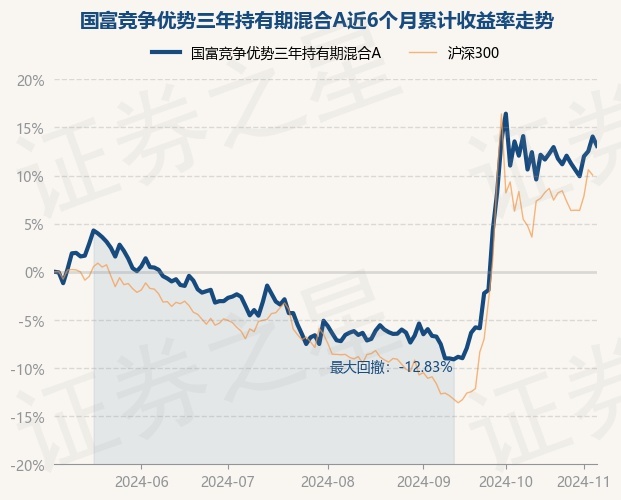 证券之星消息,11月6日,国富竞争优势三年持有期混合A最新单位净值为1.0493元,累计净值为1.0493元,较前一交易日下跌0.85%。历史数据显示该基金近1个月下跌0.56%,近3个月上涨21.87%,近6个月上涨13.08%,近1年上涨22.98%。该基金近6个月的累计收益率走势如下图: