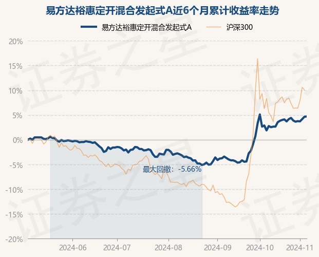 证券之星消息,11月6日,易方达裕惠定开混合发起式A最新单位净值为1.784元,累计净值为2.472元,较前一交易日上涨0.06%。历史数据显示该基金近1个月上涨1.36%,近3个月上涨7.79%,近6个月上涨4.69%,近1年上涨8.12%。该基金近6个月的累计收益率走势如下图: