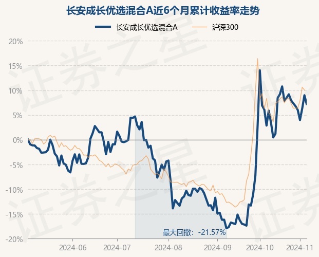 证券之星消息,11月6日,长安成长优选混合A最新单位净值为0.5597元,累计净值为0.5597元,较前一交易日下跌1.62%。历史数据显示该基金近1个月上涨4.3%,近3个月上涨22.13%,近6个月上涨7.22%,近1年上涨10.61%。该基金近6个月的累计收益率走势如下图: