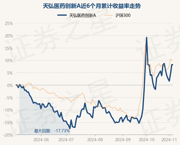 证券之星消息,11月6日,天弘医药创新A最新单位净值为0.8006元,累计净值为0.8006元,较前一交易日下跌0.02%。历史数据显示该基金近1个月下跌0.32%,近3个月上涨15.39%,近6个月上涨8.17%,近1年下跌10.27%。该基金近6个月的累计收益率走势如下图: