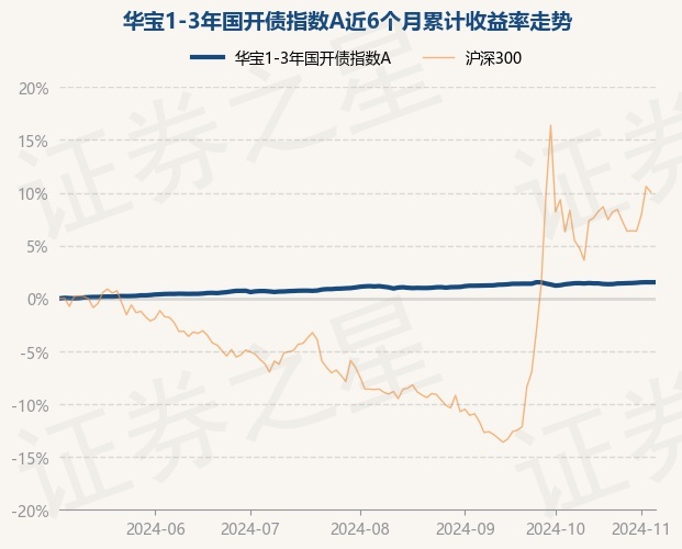证券之星消息,11月6日,华宝1-3年国开债指数A最新单位净值为1.0489元,累计净值为1.1279元,较前一交易日上涨0.0%。历史数据显示该基金近1个月上涨0.21%,近3个月上涨0.39%,近6个月上涨1.53%,近1年上涨3.27%。该基金近6个月的累计收益率走势如下图: