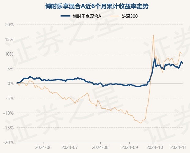 证券之星消息,11月6日,博时乐享混合A最新单位净值为0.996元,累计净值为0.996元,较前一交易日下跌0.39%。历史数据显示该基金近1个月上涨0.56%,近3个月上涨7.78%,近6个月上涨6.86%,近1年上涨6.4%。该基金近6个月的累计收益率走势如下图: