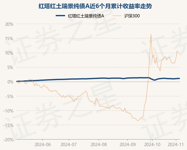 证券之星消息,11月6日,红塔红土瑞景纯债A最新单位净值为1.0557元,累计净值为1.1187元,较前一交易日上涨0.0%。历史数据显示该基金近1个月上涨0.17%,近3个月下跌0.08%,近6个月上涨1.09%,近1年上涨4.41%。该基金近6个月的累计收益率走势如下图: