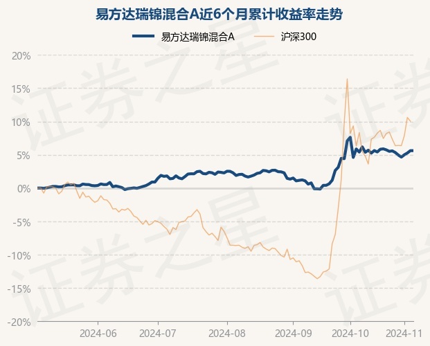 证券之星消息,11月6日,易方达瑞锦混合A最新单位净值为1.2451元,累计净值为1.2851元,较前一交易日上涨0.0%。历史数据显示该基金近1个月下跌1.64%,近3个月上涨3.37%,近6个月上涨5.33%,近1年上涨10.44%。该基金近6个月的累计收益率走势如下图: