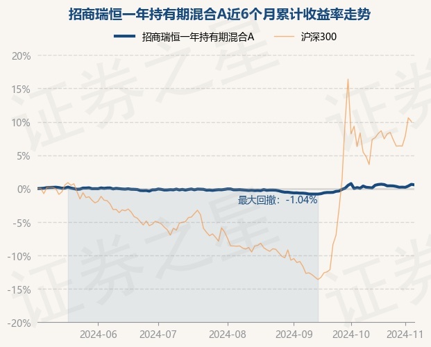 证券之星消息,11月6日,招商瑞恒一年持有期混合A最新单位净值为1.1466元,累计净值为1.1466元,较前一交易日下跌0.07%。历史数据显示该基金近1个月上涨0.08%,近3个月上涨0.75%,近6个月上涨0.57%,近1年上涨1.54%。该基金近6个月的累计收益率走势如下图: