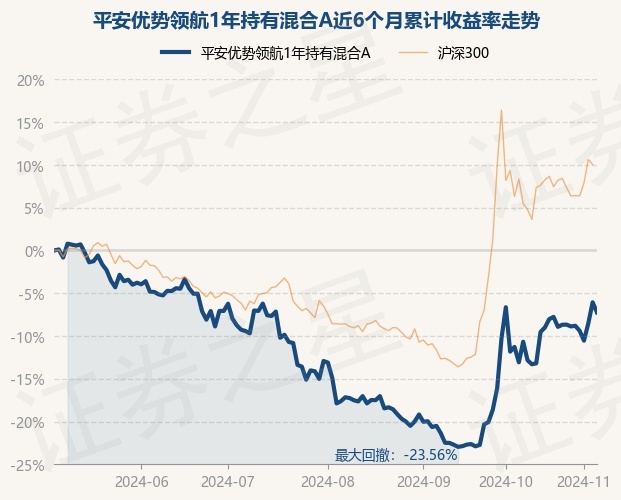 证券之星消息,11月6日,平安优势领航1年持有混合A最新单位净值为0.6084元,累计净值为0.6084元,较前一交易日下跌1.25%。历史数据显示该基金近1个月上涨3.4%,近3个月上涨12.6%,近6个月下跌7.24%,近1年下跌11.45%。该基金近6个月的累计收益率走势如下图: