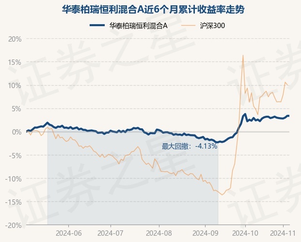 证券之星消息,11月6日,华泰柏瑞恒利混合A最新单位净值为1.1593元,累计净值为1.183元,较前一交易日上涨0.0%。历史数据显示该基金近1个月上涨0.05%,近3个月上涨3.51%,近6个月上涨3.36%,近1年上涨9.1%。该基金近6个月的累计收益率走势如下图: