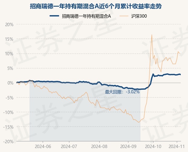 证券之星消息,11月6日,招商瑞德一年持有期混合A最新单位净值为1.0701元,累计净值为1.0701元,较前一交易日下跌0.13%。历史数据显示该基金近1个月上涨1.11%,近3个月上涨3.47%,近6个月上涨2.76%,近1年上涨3.74%。该基金近6个月的累计收益率走势如下图: