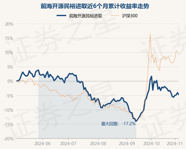 证券之星消息,11月6日,前海开源民裕进取最新单位净值为0.7187元,累计净值为0.7187元,较前一交易日下跌0.73%。历史数据显示该基金近1个月下跌5.21%,近3个月上涨5.04%,近6个月下跌4.77%,近1年上涨2.19%。该基金近6个月的累计收益率走势如下图: