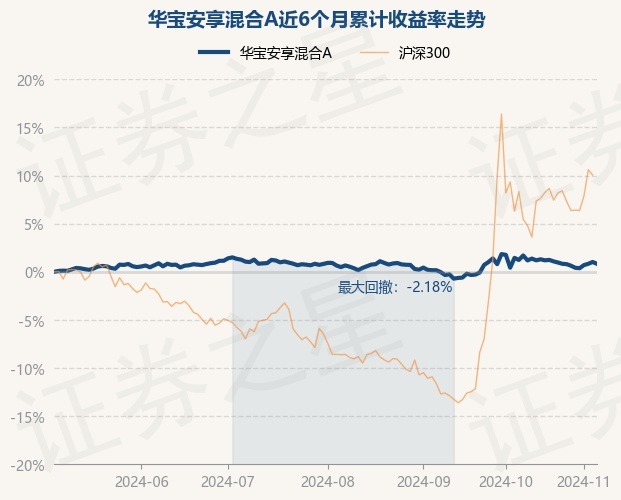证券之星消息,11月6日,华宝安享混合A最新单位净值为1.119元,累计净值为1.119元,较前一交易日下跌0.19%。历史数据显示该基金近1个月下跌0.99%,近3个月上涨0.34%,近6个月上涨0.83%,近1年上涨7.01%。该基金近6个月的累计收益率走势如下图: