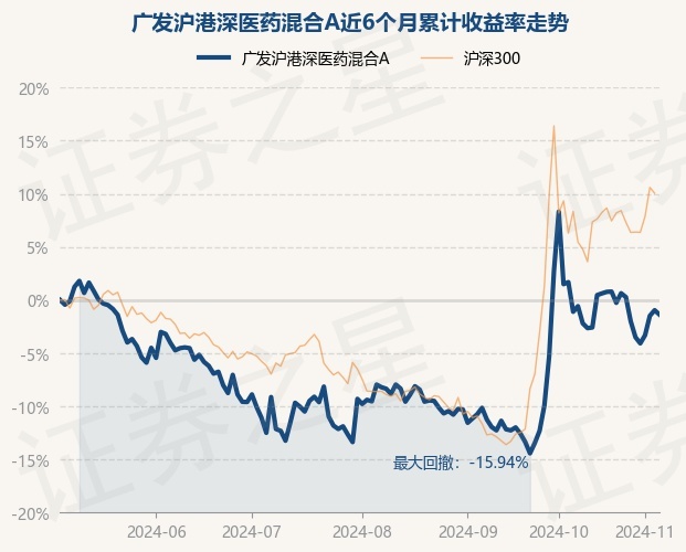证券之星消息,11月6日,广发沪港深医药混合A最新单位净值为0.6796元,累计净值为0.6796元,较前一交易日下跌0.41%。历史数据显示该基金近1个月下跌4.01%,近3个月上涨7.16%,近6个月下跌1.36%,近1年下跌8.83%。该基金近6个月的累计收益率走势如下图: