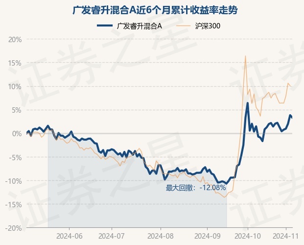 证券之星消息,11月6日,广发睿升混合A最新单位净值为0.7477元,累计净值为0.7477元,较前一交易日下跌0.48%。历史数据显示该基金近1个月下跌0.01%,近3个月上涨13.68%,近6个月上涨3.32%,近1年上涨2.19%。该基金近6个月的累计收益率走势如下图: