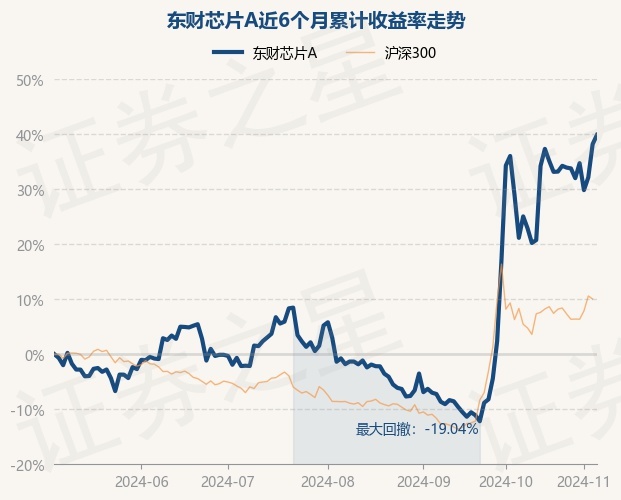 证券之星消息,11月6日,东财芯片A最新单位净值为0.8676元,累计净值为0.8676元,较前一交易日上涨1.23%。历史数据显示该基金近1个月上涨19.32%,近3个月上涨40.94%,近6个月上涨39.89%,近1年上涨16.05%。该基金近6个月的累计收益率走势如下图: