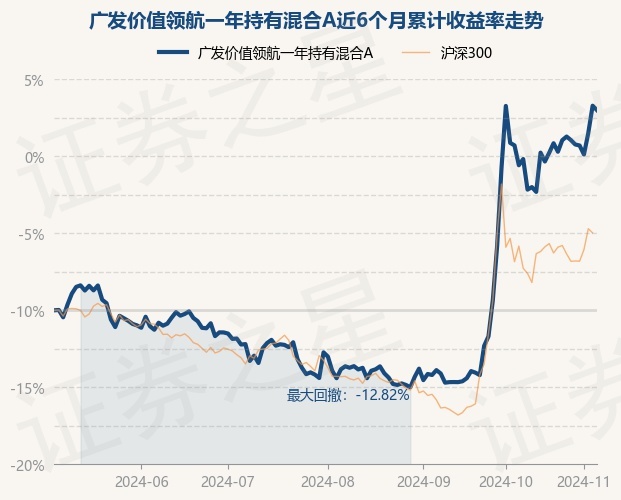 证券之星消息,11月6日,广发价值领航一年持有混合A最新单位净值为1.261元,累计净值为1.261元,较前一交易日下跌0.46%。历史数据显示该基金近1个月上涨6.37%,近3个月上涨36.44%,近6个月上涨25.99%,近1年上涨20.13%。该基金近6个月的累计收益率走势如下图: