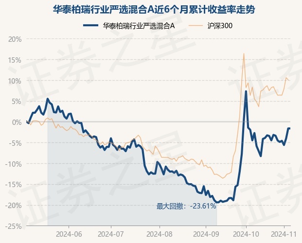 证券之星消息,11月6日,华泰柏瑞行业严选混合A最新单位净值为0.6396元,累计净值为0.6396元,较前一交易日上涨0.0%。历史数据显示该基金近1个月下跌2.56%,近3个月上涨9.9%,近6个月下跌1.96%,近1年下跌4.65%。该基金近6个月的累计收益率走势如下图: