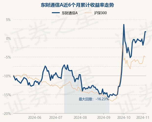 证券之星消息,11月6日,东财通信A最新单位净值为1.3327元,累计净值为1.3327元,较前一交易日上涨0.0%。历史数据显示该基金近1个月上涨7.71%,近3个月上涨31.12%,近6个月上涨22.64%,近1年上涨29.67%。该基金近6个月的累计收益率走势如下图:
