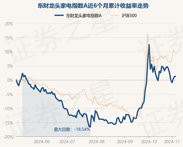 证券之星消息,11月6日,东财龙头家电指数A最新单位净值为1.0199元,累计净值为1.0199元,较前一交易日上涨0.0%。历史数据显示该基金近1个月下跌6.55%,近3个月上涨16.14%,近6个月上涨0.03%,近1年上涨22.23%。该基金近6个月的累计收益率走势如下图: