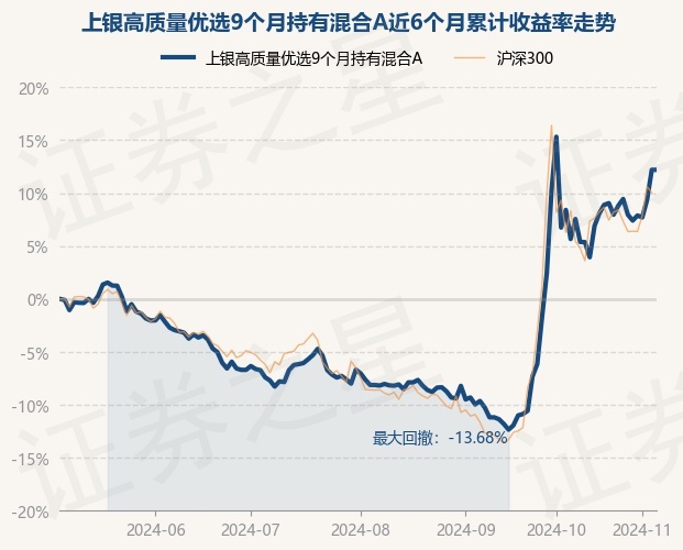 证券之星消息,11月6日,上银高质量优选9个月持有混合A最新单位净值为0.6855元,累计净值为0.6855元,较前一交易日上涨0.0%。历史数据显示该基金近1个月上涨2.05%,近3个月上涨22.5%,近6个月上涨12.54%,近1年上涨13.06%。该基金近6个月的累计收益率走势如下图: