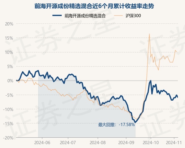 证券之星消息,11月6日,前海开源成份精选混合最新单位净值为0.663元,累计净值为0.663元,较前一交易日下跌0.79%。历史数据显示该基金近1个月下跌4.99%,近3个月上涨2.97%,近6个月下跌5.89%,近1年上涨0.48%。该基金近6个月的累计收益率走势如下图: