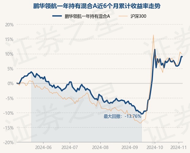 鹏华领航一年持有混合A为混合型-偏股基金,根据最新一期基金季报显示,该基金资产配置:股票占净值比95.31%,无债券类资产,现金占净值比4.7%。基金十大重仓股如下: