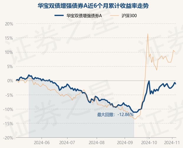 证券之星消息,11月6日,华宝双债增强债券A最新单位净值为1.0444元,累计净值为1.0444元,较前一交易日下跌0.44%。历史数据显示该基金近1个月上涨0.29%,近3个月上涨6.24%,近6个月下跌1.2%,近1年下跌0.3%。该基金近6个月的累计收益率走势如下图: