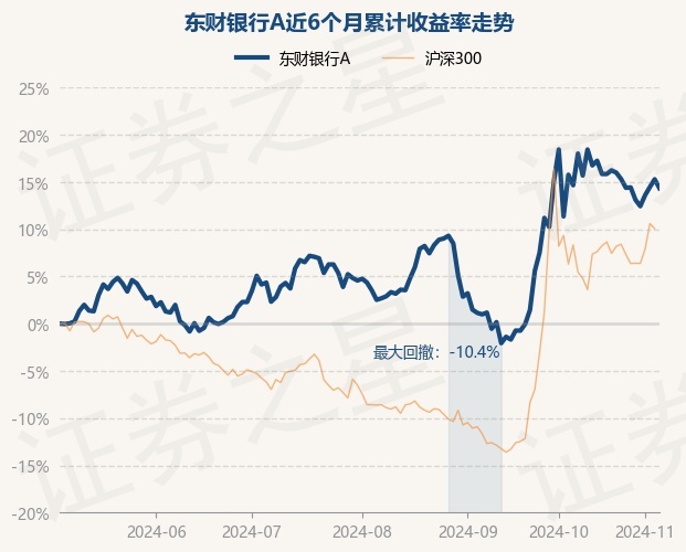 证券之星消息,11月6日,东财银行A最新单位净值为1.1416元,累计净值为1.1416元,较前一交易日下跌0.82%。历史数据显示该基金近1个月下跌0.7%,近3个月上涨11.53%,近6个月上涨14.34%,近1年上涨26.44%。该基金近6个月的累计收益率走势如下图: