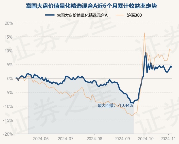 证券之星消息,11月6日,富国大盘价值量化精选混合A最新单位净值为1.6111元,累计净值为1.6111元,较前一交易日下跌0.4%。历史数据显示该基金近1个月下跌2.89%,近3个月上涨7.1%,近6个月上涨3.98%,近1年上涨11.19%。该基金近6个月的累计收益率走势如下图: