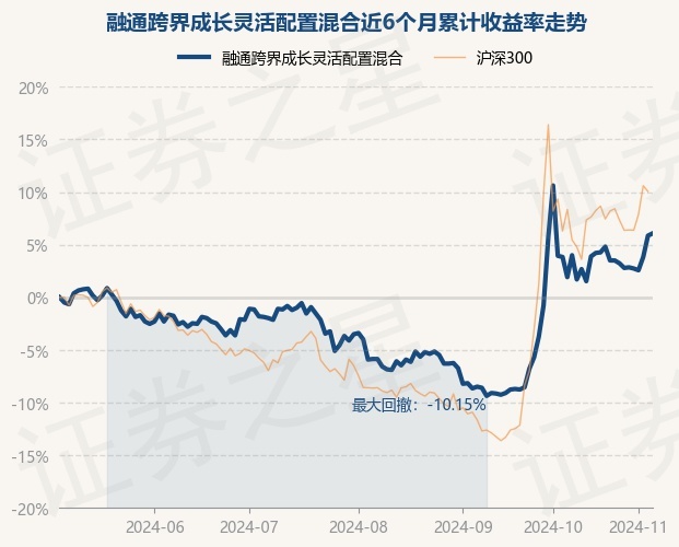 证券之星消息,11月6日,融通跨界成长灵活配置混合最新单位净值为1.938元,累计净值为1.938元,较前一交易日上涨0.21%。历史数据显示该基金近1个月上涨0.31%,近3个月上涨12.67%,近6个月上涨6.08%,近1年上涨11.57%。该基金近6个月的累计收益率走势如下图:
