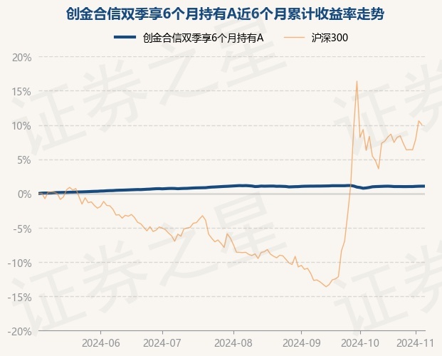 证券之星消息,11月6日,创金合信双季享6个月持有A最新单位净值为1.1551元,累计净值为1.1551元,较前一交易日上涨0.0%。历史数据显示该基金近1个月上涨0.14%,近3个月下跌0.06%,近6个月上涨1.08%,近1年上涨4.31%。该基金近6个月的累计收益率走势如下图: