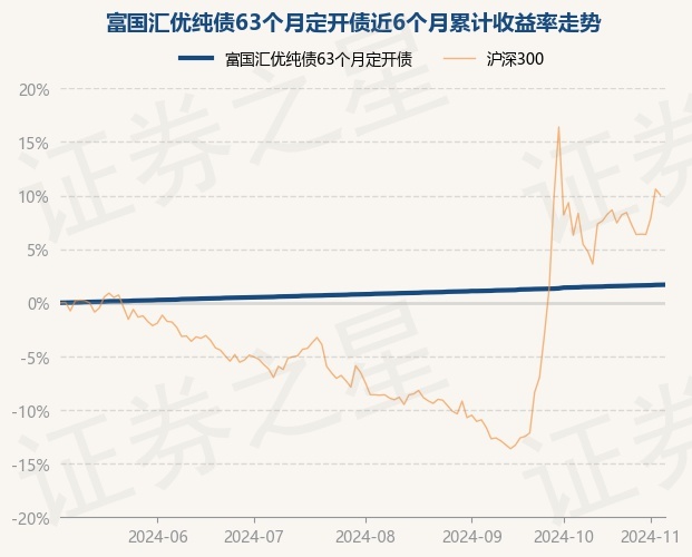 证券之星消息,11月6日,富国汇优纯债63个月定开债最新单位净值为1.054元,累计净值为1.161元,较前一交易日上涨0.01%。历史数据显示该基金近1个月上涨0.33%,近3个月上涨0.83%,近6个月上涨1.68%,近1年上涨3.32%。该基金近6个月的累计收益率走势如下图: