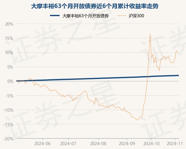 证券之星消息,11月6日,大摩丰裕63个月开放债券最新单位净值为1.0614元,累计净值为1.1514元,较前一交易日上涨0.0%。历史数据显示该基金近1个月上涨0.39%,近3个月上涨0.96%,近6个月上涨1.94%,近1年上涨3.8%。该基金近6个月的累计收益率走势如下图: